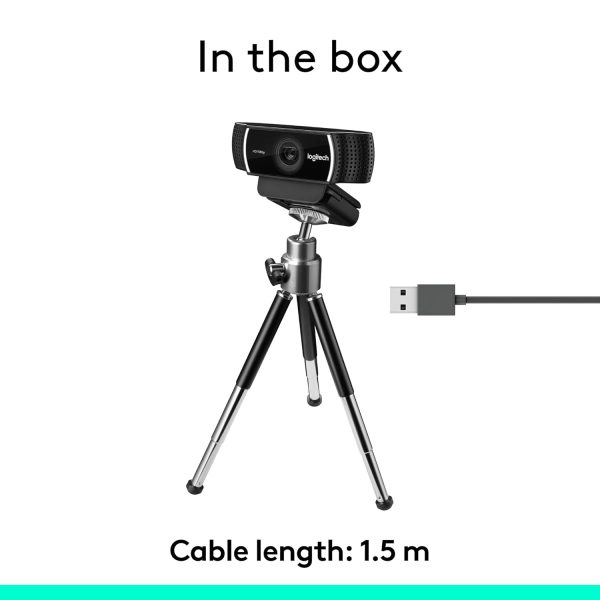 Logitech C922 Pro Stream Webcam, HD 1080p/30fps or HD 720p/60fps, Digital, Hyperfast Streaming, Stereo Audio, HD Light Correction, Autofocus, for YouTube, Twitch, XSplit - Black