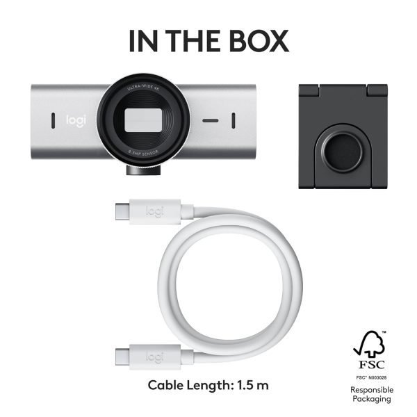 Logitech MX Brio Ultra HD 4K Collaboration and Streaming Webcam with Free Adobe Subscription, 1080p at 60 FPS, Dual Noise Reducing Mics, Show Mode, USB-C, Webcam Cover