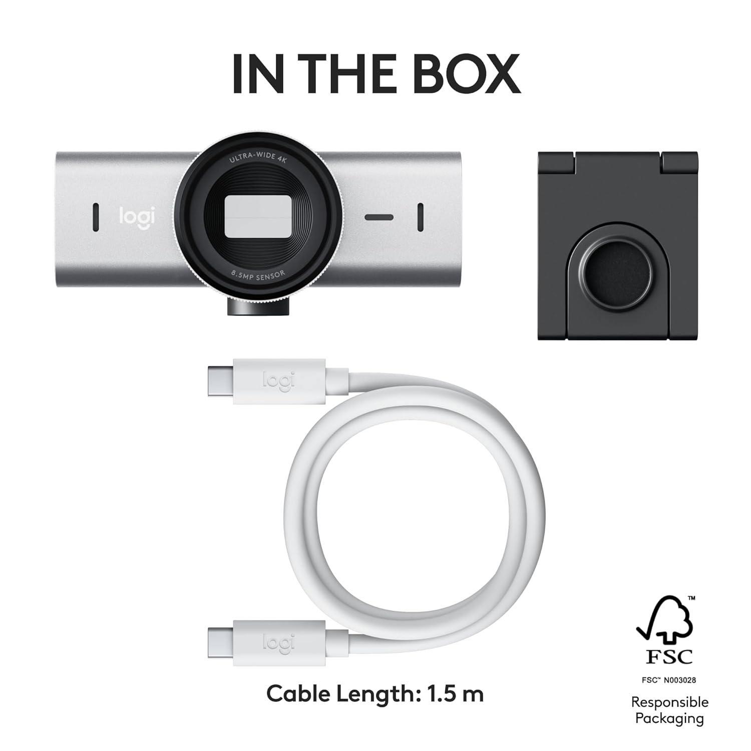 MX Brio, Mount clip with removable adapter, USB-C to C 3.0 cable